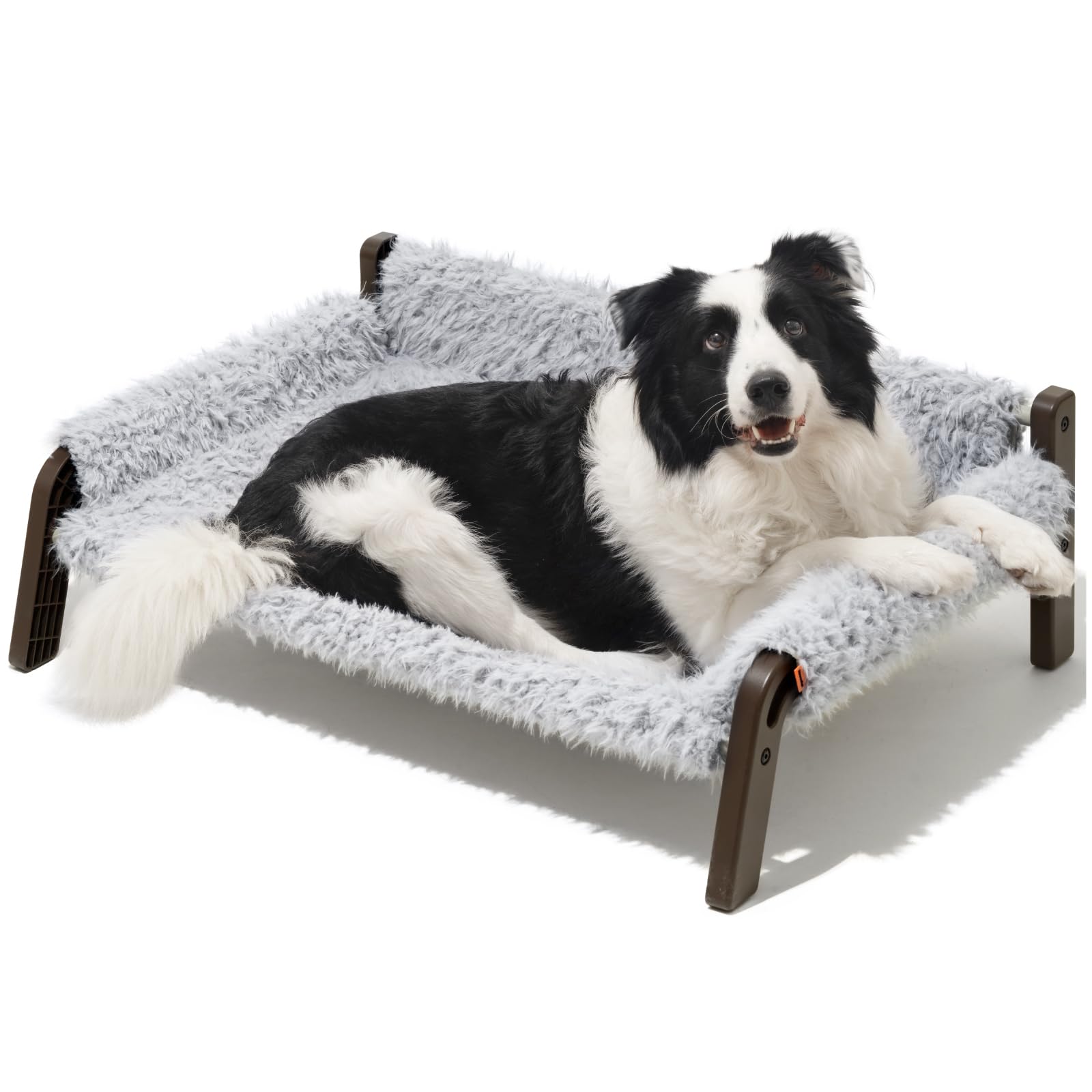 MEWOOFUN Raised Outdoor Dog Bed,Elevated Dog Cot Bed with Non-Slip Bottom for Medium Dogs, Breathable Teslin Mesh Portable Dog Sofa Bed Up to 66lbs(Teslin Brown)